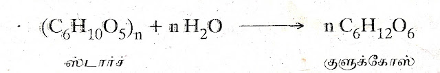 (அ) ஸ்டார்ச்சை நீர்த்த ஹைட்ரோகுளோரிக் அமிலத்தால் அதிக அழுத்தத்தில் நீராற்பகுக்கும்போது, குளுக்கோஸ் கிடைக்கிறது.